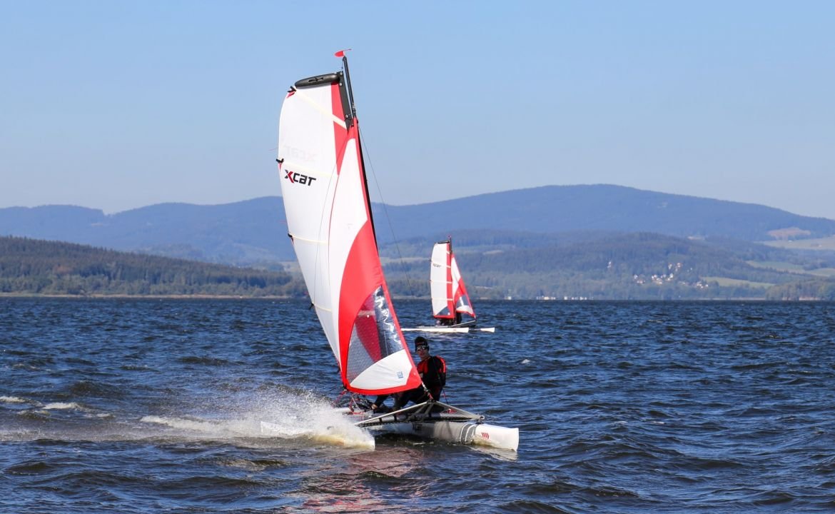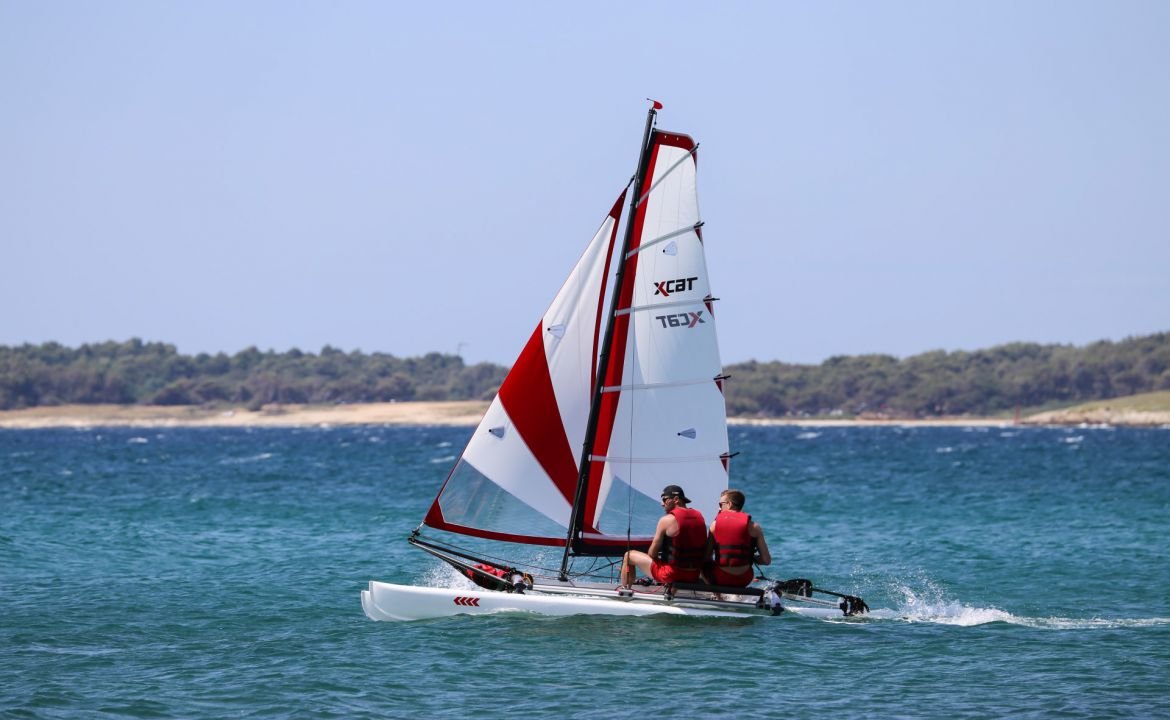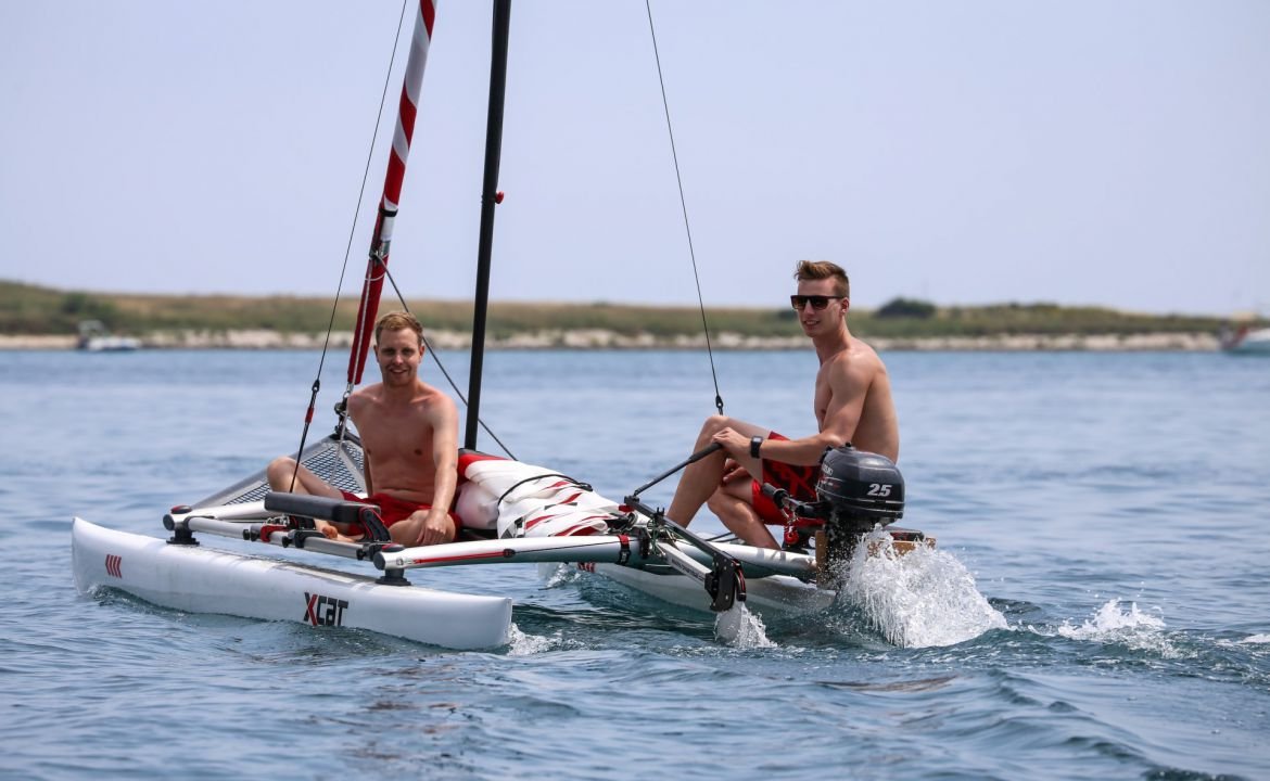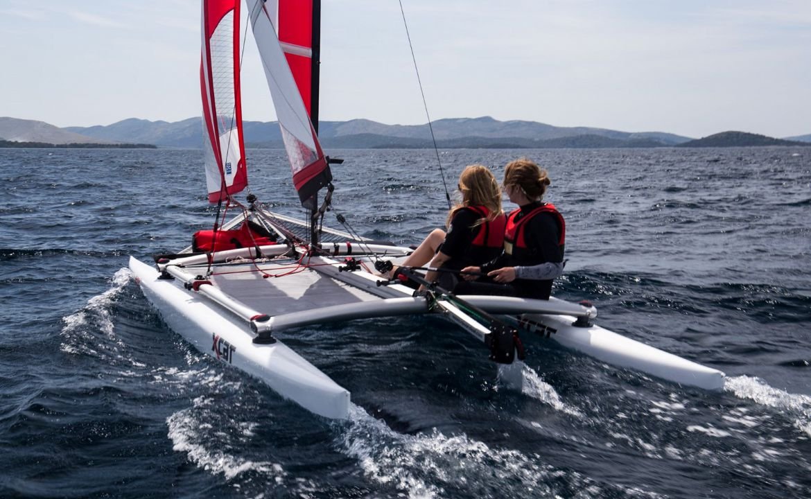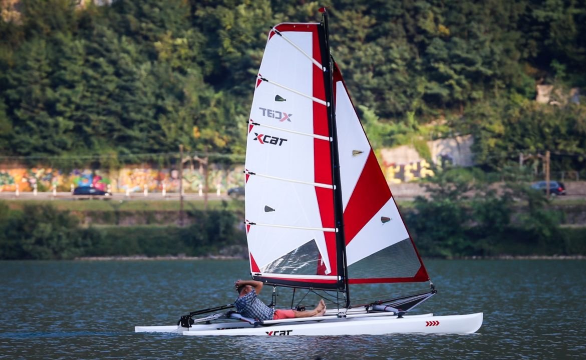 Le catamaran facile et à voile c’est ici, le Xcat est destiné aux voileux nomades qui veulent être sur l’eau en un minimum de temps soit 12 minutes dans le cas présent.